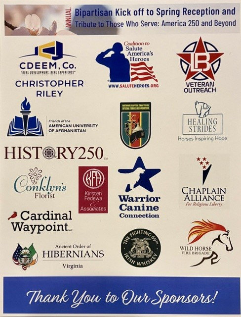 Please see attached from last night’s Bipartisan Tribute to Service.  This annual event brings together several veteran organizations and raises awareness and funds for Warrior Canine Connection (WCC).  The WCC raises and trains service dogs for veterans.  I am proud to say that the AOH was a donor this year, which increases awareness/recruiting and our image for veteran support.
