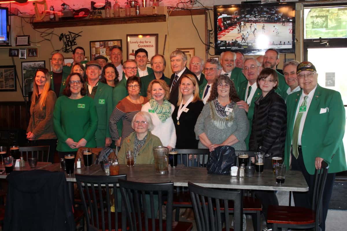 Irish Ambassador to the United States Daniel Mulhall graciously posing with members of AOH Dooley Division and LAOH Mary Ryan Divsion of Richmond. Daniel Mulhall is the Irish Ambassador to the United States. The AOH and LAOH hosted a luncheon for the Ambassador at Poe’s Pub in Richmond on March 1, 2020.